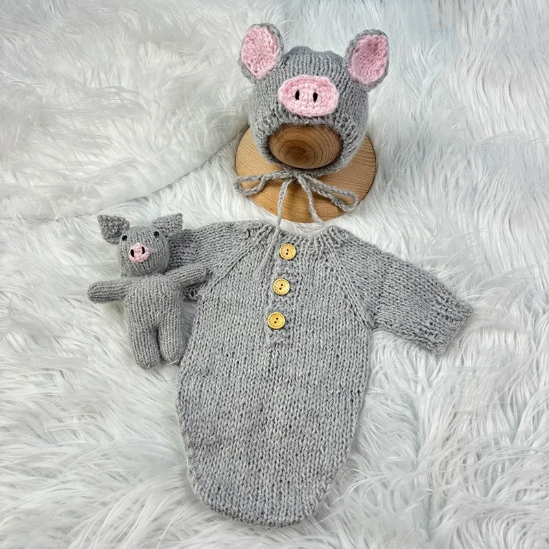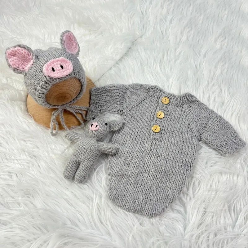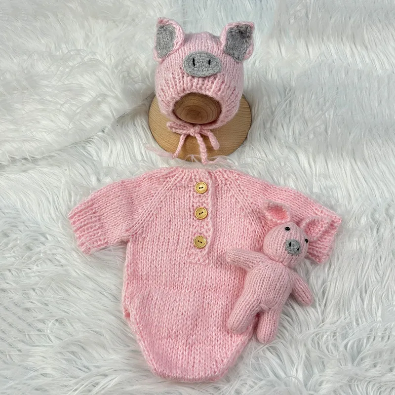 3pcs Baby Costumes Newborn Photography Outfits Adorable Pig Hat