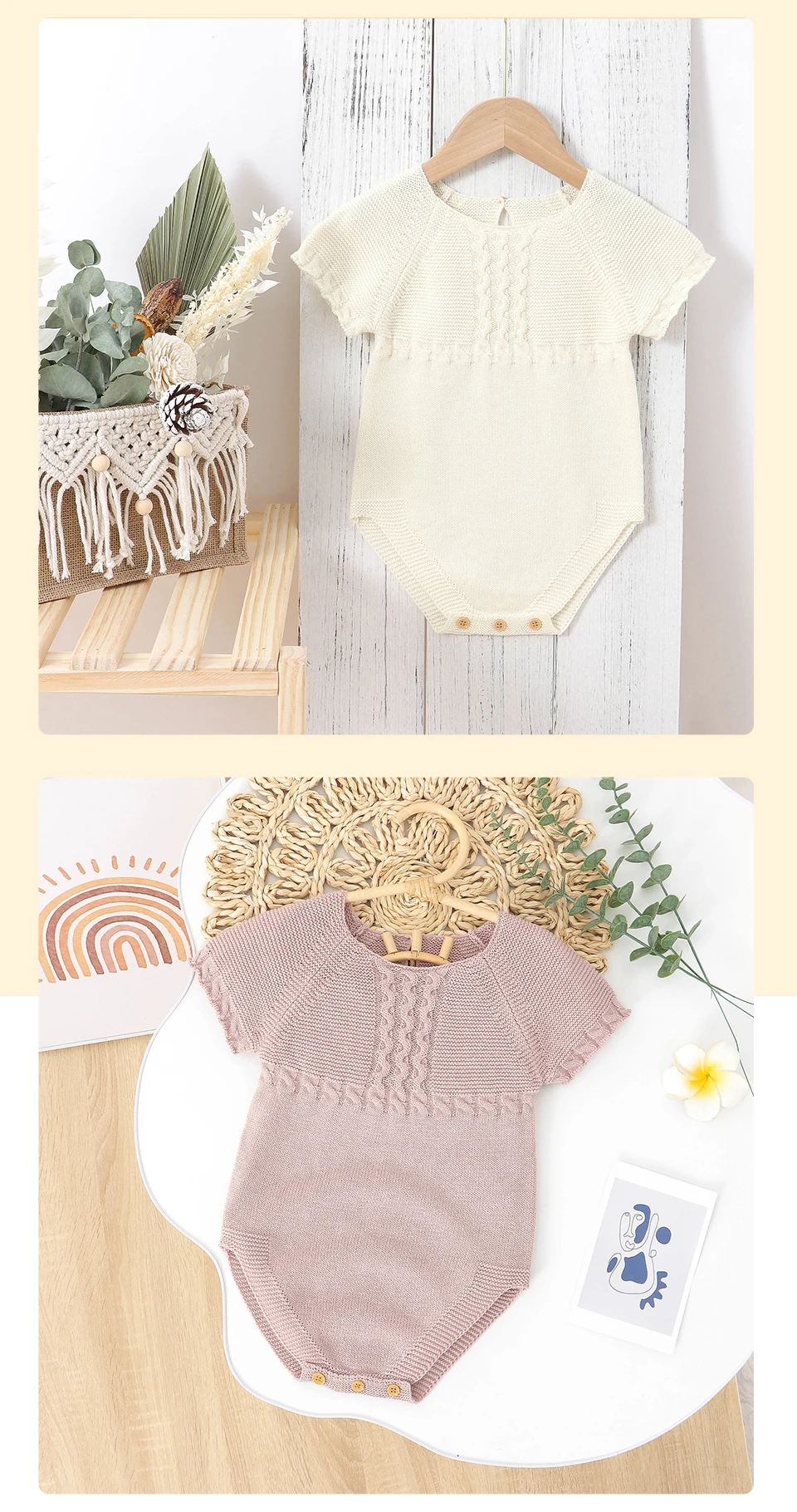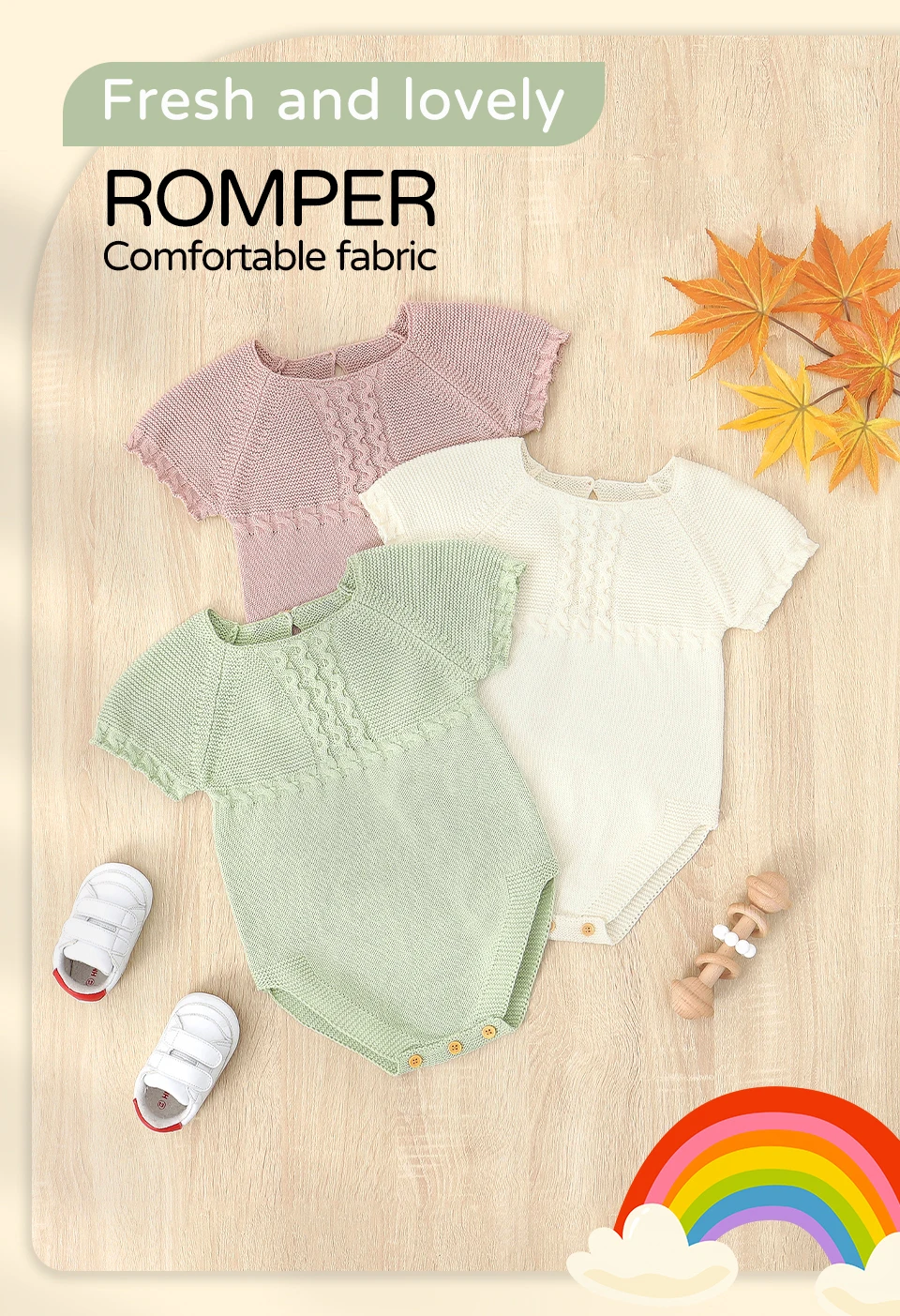 Baby Girl Summer Bodysuit, Solid Muslin Romper 1–18M