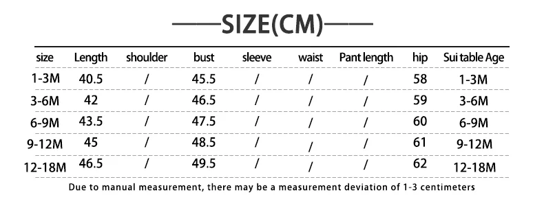 size_info: {"sizeInfoList":[{"length":{"cm":"45.5","inch":"17.91"},"size":"1-3M","vid":-1},{"length":{"cm":"46.5","inch":"18.31"},"size":"3-6M","vid":-2},{"length":{"cm":"47.5","inch":"18.70"},"size":"6-9M","vid":-3},{"length":{"cm":"48.5","inch":"19.09"},"size":"9-12M","vid":-4},{"length":{"cm":"49.5","inch":"19.49"},"size":"12-18M","vid":-5}]}